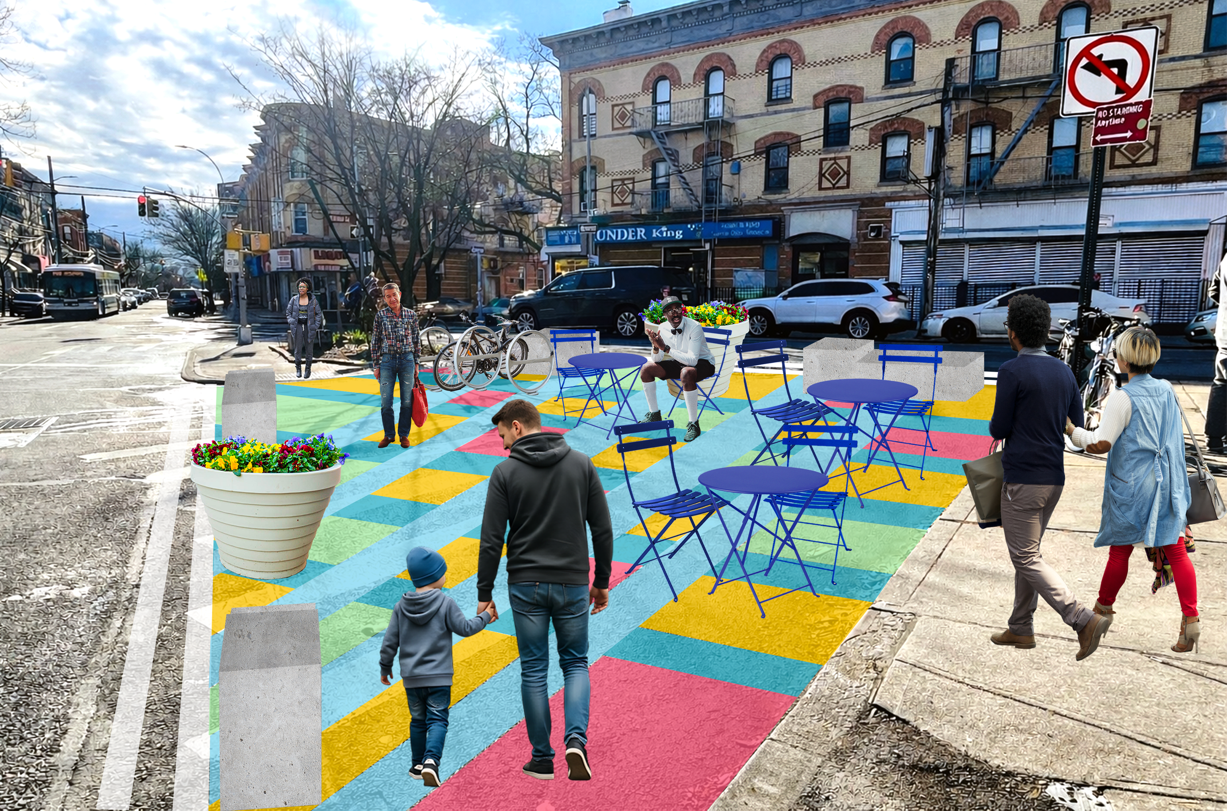 Ridgewood Rides is seeking support to pedestrianize the slip lane that runs through Korean Square, as this unnecessary extra lane creates a dangerous intersection that is hostile to pedestrians and encourages illegal driver behavior. Ridgewood Rides would like to see this square given back to the people and is asking the DOT to close this slip lane and to create a People-First Plaza at Korean Square.